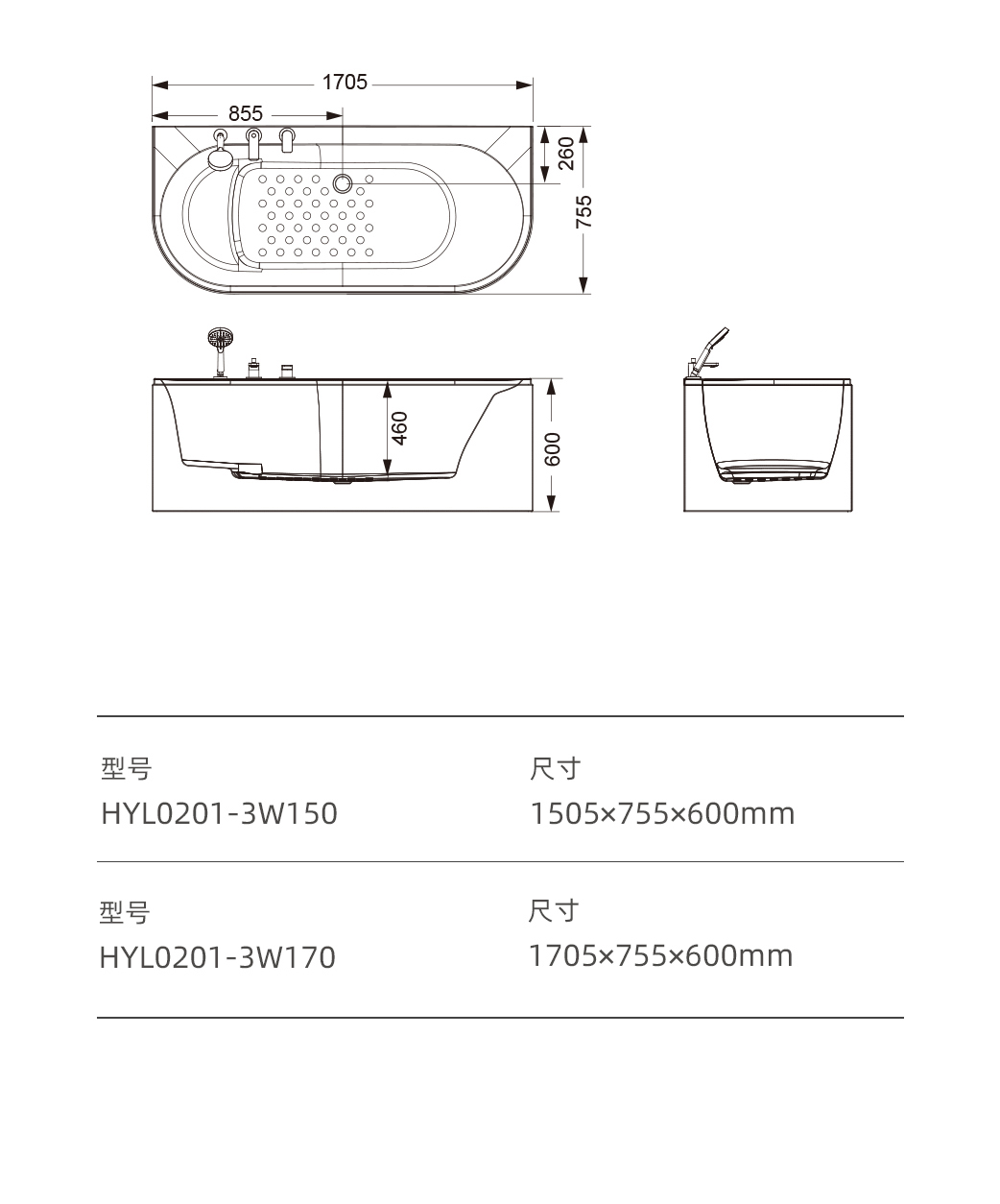 HYL0201-3W170浴缸